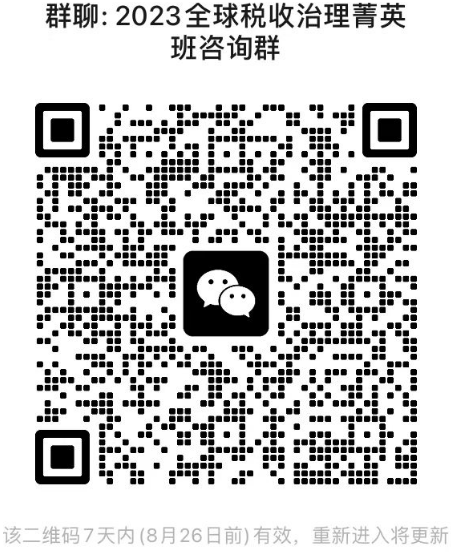 财税学院全球税收治理菁英班招生(线上)宣讲和答疑会时间待定,敬请关注财税学院后续通知。如有任何疑问,欢迎加入咨询群微信沟通。