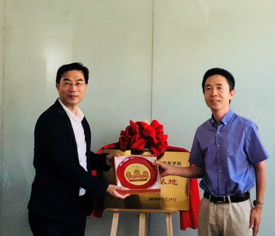 仪式伊始,国瑞税务董事长孙健先生首先对我院领导、教师的到来表示热烈欢迎。白彦锋院长代表财政税务学院介绍了我院的基本情况,并探讨了可能的合作模式。党委副书记宋立岩老师从学生工作视角阐述了建设实习实践基地的重要性。国瑞税务孙健董事长代表国瑞税务介绍了国瑞税务的基本情况,尤其是针对目前国内税务师事务所的转型,以及税务咨询行业的新趋势进行了探讨。其后,白彦锋院长与孙健董事长分别代表双方正式签署共建协议并揭牌。