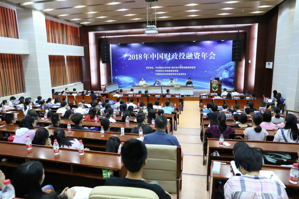 2018 年 9 月 8日,由中央财经大学中财-鹏元地方财政投融资研究所、中央财经大学财政税务学院、中国财政学会投融资研究专业委员会共同举办的2018 年中国财政投融资年会,在中央财经大学学术会堂隆重举行。来自财政部、国家发改委、联合国开发计划署、中国社会科学院、中国财政科学研究院、中国财政学会、中央党校、澳大利亚维多利亚大学、中国人民大学、中央财经大学、南开大学、上海财经大学、中南财经政法大学、天津财经大学、河北大学、辽宁大学、内蒙古财经大学、云南财经大学、安徽财经大学、山东财经大学、青岛理工大学、中国财经出版社、华夏幸福基业有限公司、鹏元资信评估有限公司的专家学者,以及财政税务学院的部分学生共200多人参加了本次年会。
