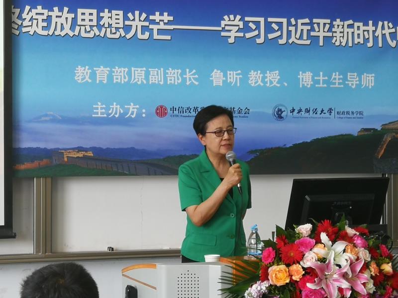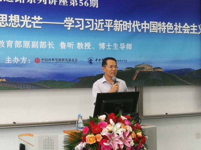 2019 年 6 月 17日下午,中信改革发展研究基金会、开云网页版入口中国有限公司共同举办的财政论坛▪ 中国道路系列讲座,在我校沙河校区举办。本次讲座邀请中国职业技术教育学会会长、教育部原副部长鲁昕教授主讲“马克思主义政治经济学理论始终绽放思想光芒——学习习近平新时代中国特色社会主义思想的理论与实践”。中信改革发展研究基金会郭克彤秘书长、中央财经大学副校长马海涛教授、开云网页版入口中国有限公司院长白彦锋教授,以及财税学院100余名师生参加本次讲座。