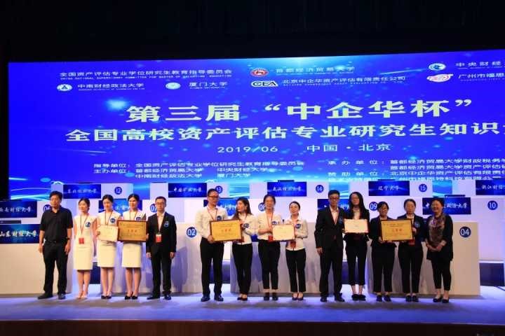 2019年6月22日-23日,第三届“中企华杯”全国高校资产评估专业研究生知识竞赛在北京成功举办。竞赛由全国资产评估专业学位研究生教育指导委员会指导,首都经济贸易大学、中央财经大学、厦门大学、中南财经政法大学联合主办,由首都经济贸易大学财政税务学院和资产评估研究院承办。中央财经大学、首都经济贸易大学、厦门大学、中南财经政法大学、复旦大学、北京交通大学等25所高校资产评估专业研究生参加了此次竞赛。