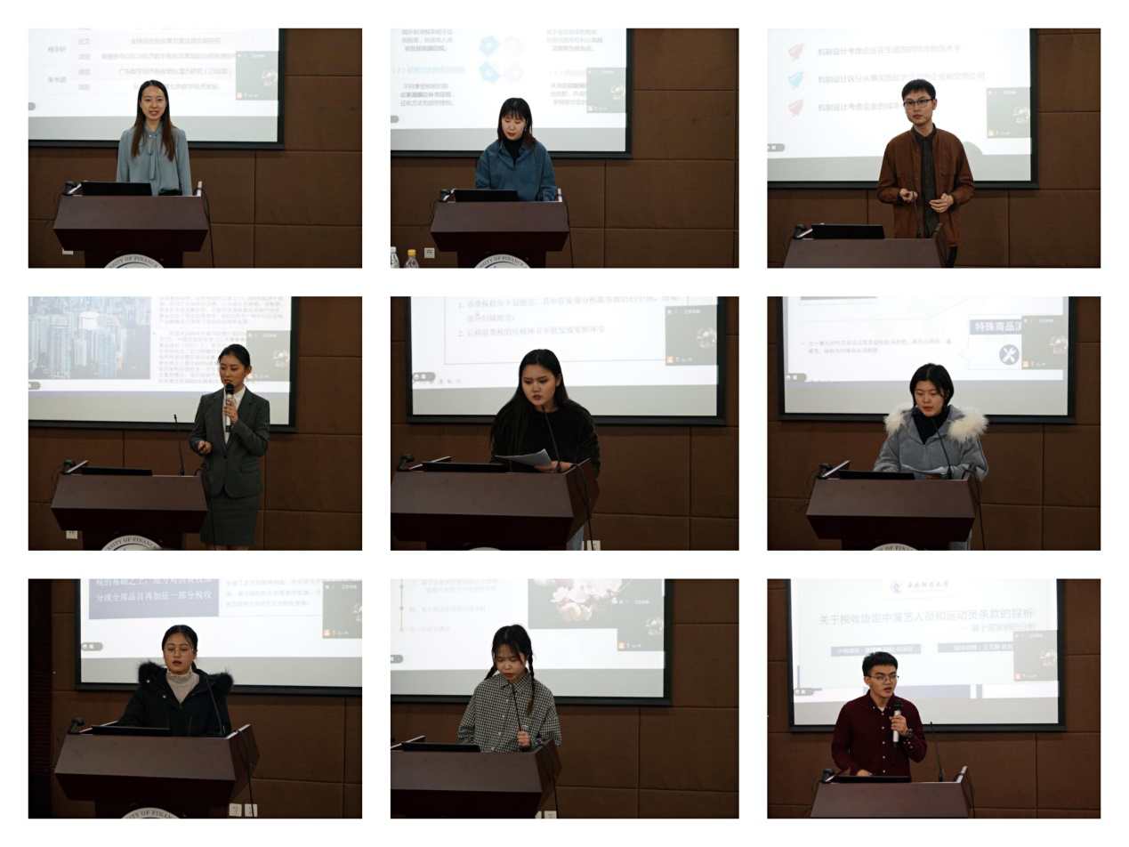 展示十一是由廖鎏曦、杨阳、余泳欣带来的关于税收协定中演艺人员和运动员条款的探析,案例的第一部分进行小组介绍,介绍了小组名称和小组口号,第二部分借助金秀贤参加《最强大脑》录制引入话题,进一步分析了演艺人员的特点,第三部分介绍了OECD范本第17条演变历程,第四部分以演艺人员来华演电视剧被征税案为例,探究演艺人员活动的征税范围,第五部分以北京地税追征 1800 万外国影星个人所得税案为例,讨论对演艺活动征税是否需要穿透的问题,最后对问题进行小结。