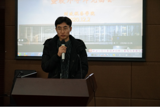 财政税务学院学生代表王荟儒分享了自己开学一学期的感悟与收获,并对校外导师的指导表示了衷心的感谢。