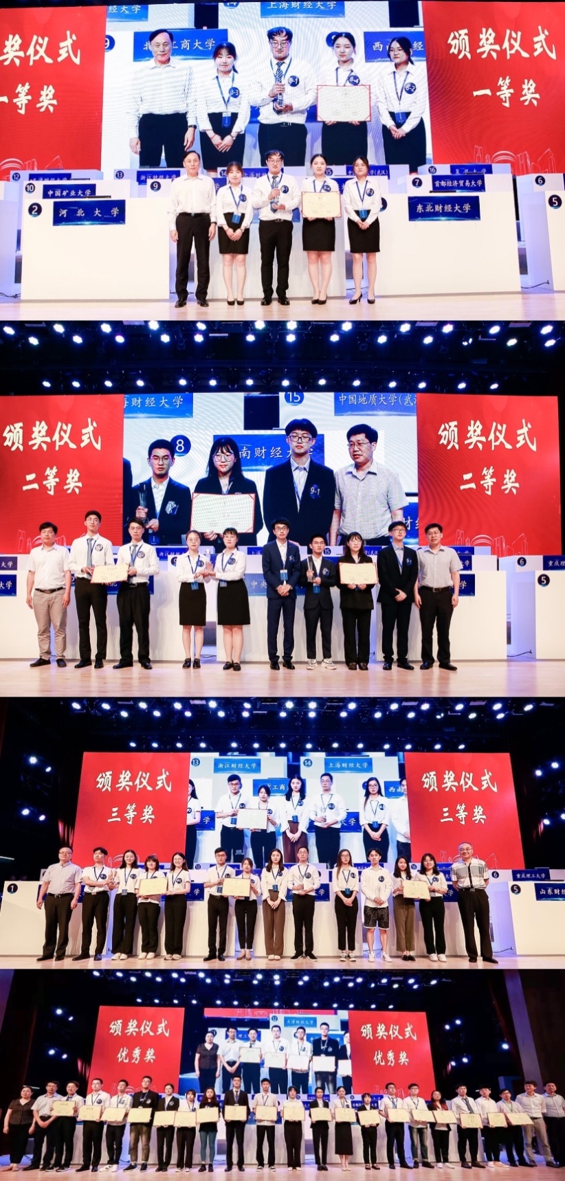 经过初赛和复赛的激烈角逐,最终西南财经大学获得一等奖,北京工商大学、中国矿业大学同获二等奖,上海财经大学、重庆理工大学、东北财经大学获得三等奖,首都经济贸易大学、浙江财经大学、中央财经大学、中南财经政法大学等高校获优秀奖。位列前六名的高校指导老师被评为优秀指导老师。