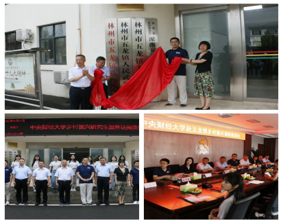 7月17日,五龙镇政府隆重举行“中央财经大学乡村振兴研究生服务站”揭牌仪式。出席的有中央财经大学研究生院副院长肖鹏和刘钾、张伟强老师,林州市副市长朱武迅、人大副主任辛有录等。揭牌仪式后,举行了调研成果座谈会。调研团队向林州市和研究生院领导汇报了调研成果,并对五龙镇未来发展提出了具体的建议措施。