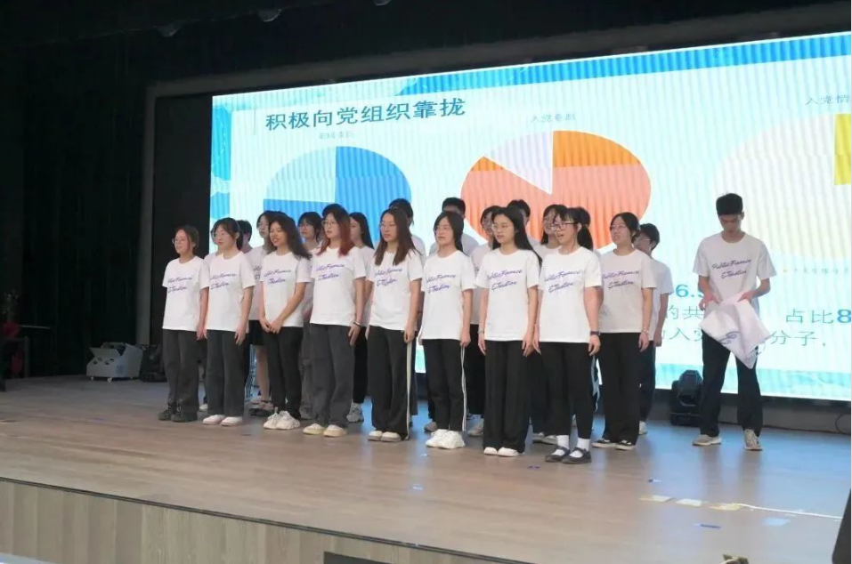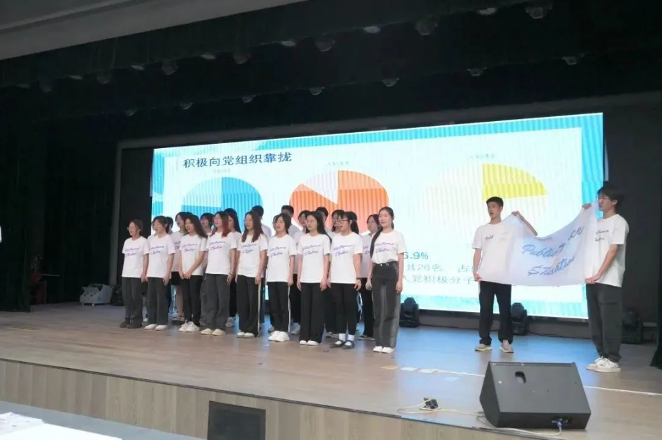 最后,全班同学登台合唱班歌《年轻的战场》,同学们从五湖四海汇聚一家,在短暂的一年里一起生活、成长,每个人的未来都不可定义,每个人的未来都光明可期。