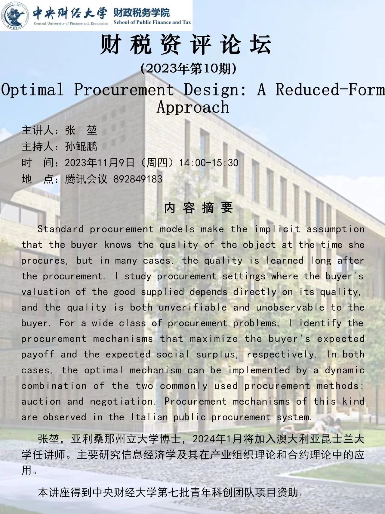 【学术动态】财税学院举办财税资评工作坊第九期