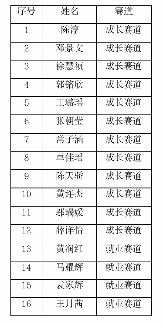 根据关于举办首届全国大学生职业规划大赛校内赛的通知要求,学院于11月1日向学院全体学生传达了本次大学生职业规划大赛的通知,并积极进行宣传动员。截止2023年11月6日,共收到26份参赛作品。11月7日,经学院评审小组评审,拟推荐以下16名同学进入学院决赛,其中成长赛道12名,就业赛道4名。