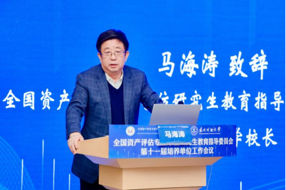 资产评估教指委副主任委员、中央财经大学校长马海涛教授代表资产评估教指委致辞。马海涛教授强调发展专业学位研究生教育是经济社会进入高质量发展阶段的必然选择、是主动服务创新型国家建设的重要途径、是学位与研究生教育改革发展的战略重点。他要求资产评估专业学位培养单位积极响应《教育部关于深入推进学术学位与专业学位研究生教育分类发展的意见》的号召,依据《专业学位研究生教育发展方案(2020-2025)》的要求,稳步推进资产评估专硕教育质量的提升,践行科教兴国战略。培养单位应坚持开放性办学、内涵式发展,凝练核心优势;强化产教融合育人机制,践行学术、职业、实践三位一体培养模式;探索激励专业学位教育成果的评价机制;建立用人单位意见反馈和毕业生满意度调查机制,以需求导向提升专硕培养质量。