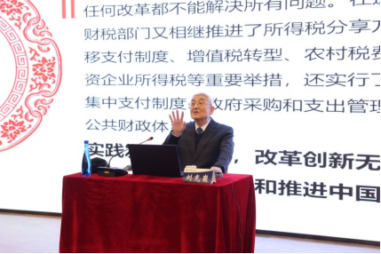 刘克崮老师指出1994年财税体制改革是制度性和历史性的重大改革。他从国家与企业分配关系改革、工商税制改革和分税制财政体制改革等方面分享了财税改革过程中的历史细节。刘克崮老师提出,实践发展无止境,改革创新无止境,财税体制改革将持续伴随和推进中国经济社会发展。刘克崮老师讲授的内容紧贴实际、意义深远,进一步加深了广大师生对财税体制改革的认知和理解。