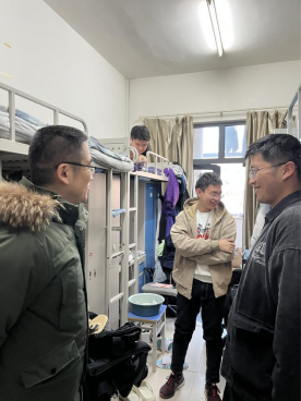 为营造良好的生活学习氛围,了解学生返校情况,提高学生安全防范意识,2024年3月6日晚5点,财政税务学院党委书记肖鹏、副书记陈士平及辅导员吕浩然老师一同深入走访学生宿舍,在学期伊始慰问返校学生,深入学生宿舍进行安全提醒与检查。