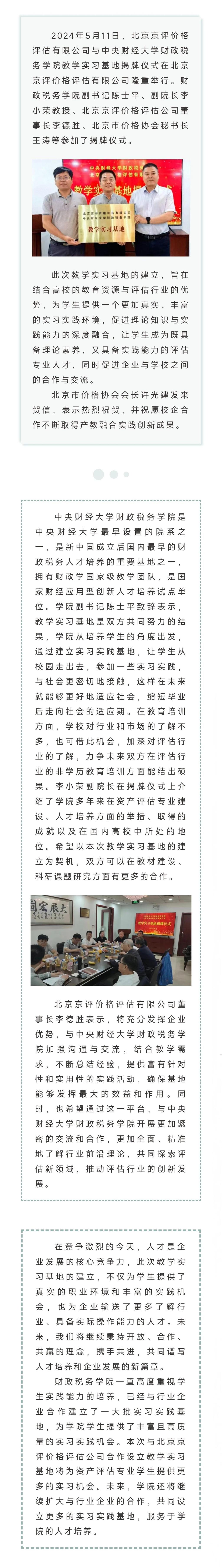 开云网页版入口中国有限公司与北京京评价格评估有限公司举办教学实习基地揭牌仪式