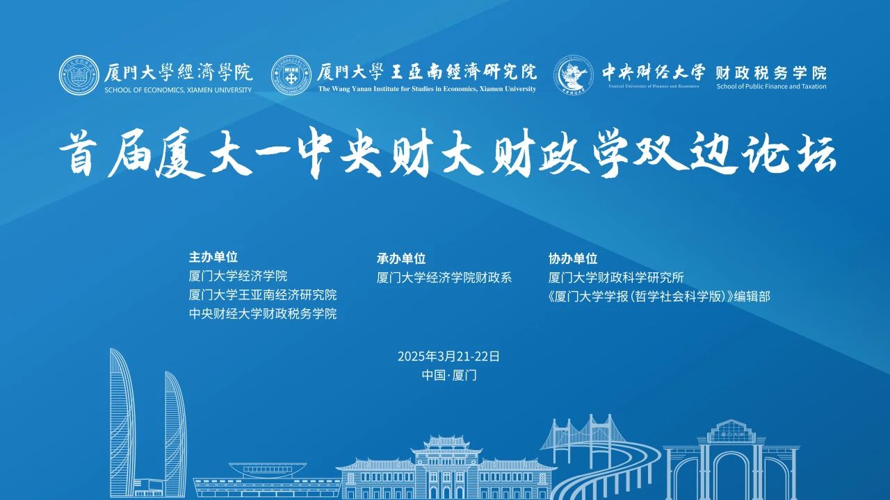 首届“厦大-央财财政学双边论坛”由厦门大学经济学院财政系承办,会议时间为2025年3月22日。