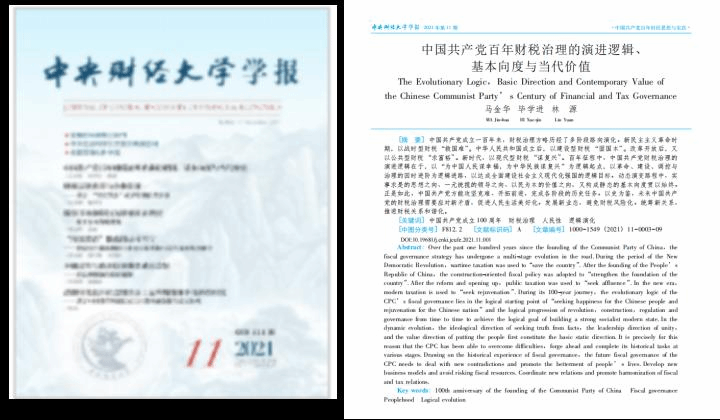 我院马金华教授、2020级博士研究生毕学进在《中央财经大学学报》2021年第11期发表《中国共产党百年财税治理的演进逻辑、基本向度与当代价值》一文。