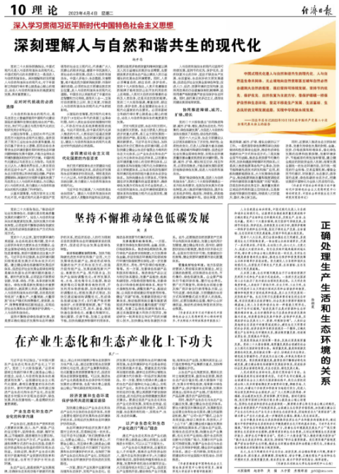 4月4日,《经济日报》刊登了我院院长樊勇发表的署名文章——《坚持不懈推动绿色低碳发展》。