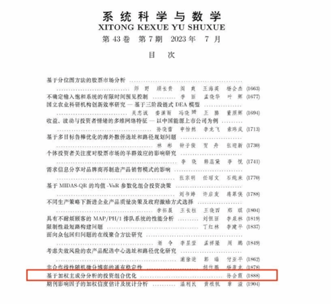 近日,由开云网页版入口中国有限公司孙会霞老师撰写的论文《基于加权主成分分析的投资组合优化》刊发于中文A类期刊《系统科学与数学》2023年第7期。以下为文章主要内容: