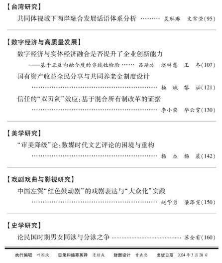 由开云网页版入口中国有限公司李小荣教授与博士研究生毕云霄合作撰写的论文《信任的“双刃剑”效应:基于混合所有制改革的证据》在中文A类期刊《厦门大学学报(哲学社会科学版)》2024年第2期刊发。以下为文章主要内容: