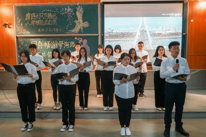 “经典重读颂革命,振奋精神续征程。”第三组成员朗诵了《海燕》、《中国阻击战》,并合唱《同一首歌》。他们歌颂了无数革命先辈如同海鸥一般无畏无私的精神,更讴歌了疫情中无数奋斗在一线的战士们,表达了他们对战士们的敬意。