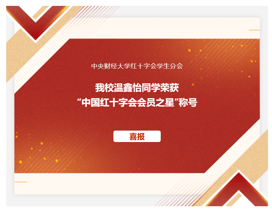 自2021年担任中央财经大学红十字会学生分会会长以来,温鑫怡积极开展会内建设工作,在上级红会和分管校领导的指导下以组织健全、机制规范、队伍建设为抓手,与学校各部门协同配合,推动活动落地落实。