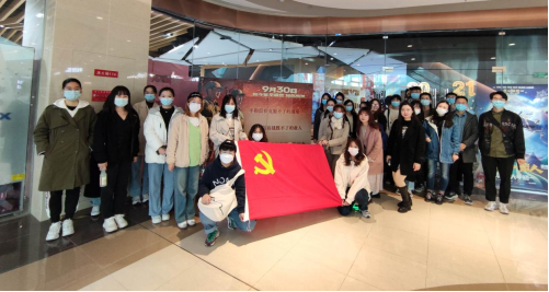 图为2021级税务研究生党支部观看红色电影《长津湖》合影