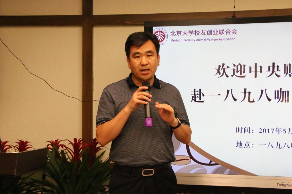 上半场的活动由北京大学校友创业联合会执行秘书长蔡润维先生主持,他首先对咖啡馆进行了简要的介绍。1898咖啡馆于2013年依托北京大学校友创业联合会创建,是国内首家校友创办的公司,开创了中国式众筹的新模式。而后有三位咖啡馆的股东上台发言。文钊先生介绍了创建咖啡馆的历程和中国式众筹的发源,并分析了中国式众筹的特色。基于中国社会人们普遍对陌生人缺乏信任的特点,国外的众筹模式在中国寸步难行,而北大校友开创的中国式众筹模式从小圈子做起,便摆脱了这个困境,并取得辉煌成就。关于大学生创业,他指出大学生应当先学好专业知识,全面提升自身的能力后再去创业。章叶飞女士结合自己的工作经历给大家提出了创业建议,鼓励同学们在学习的同时接触社会,开阔视野。陆德忠先生介绍了自己创建甘肃1898咖啡馆的过程,并结合自己担任大创评委的经历分析了大学生创业的特点,他建议同学们在创业的过程中侧重对市场的调查和可行性的分析。