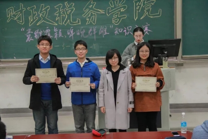 11月4日晚,财政税务学院在中央财经大学沙河校区东区主教216举办了第八届读书月系列活动之“囊锥露颖,睥睨群雄”知识竞赛决赛。本次大赛由财政税务学院团委学生会编辑部主办,大一大二大三的同学都参与其中。决赛由财政学类17-5班李洋同学主持,团委副书记陈颖老师,学生会副主席寇程恺、刘剑博出席了本次活动。