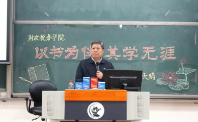 11月1日下午,财政税务学院在中央财经大学沙河校区东区主教111举办了第八届读书月系列讲座之“以书为伴,其学无涯”讲座。本次讲座邀请到了中国银行全球金融市场部总监吴天鹏先生与大家分享他的读书经历与感悟。财政税务学院党委副书记宋立岩老师,团委副书记陈颖老师出席了本次讲座,学院各年级同学参与其中。