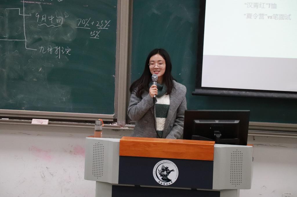 第五位是直保人大汉青金融专硕的张艳姝学姐。张艳姝学姐从课程体系、师资团队、就业和生源四个角度介绍了人大汉青金专,接下来介绍了申请流程和行程安排。学姐接下来介绍的板块是考核方式、个人体会。并给了大家在信息收集、个人定位、报名、材料准备和笔试面试准备的建议。尤其告诫大家要有计划地准备,切忌拖延。