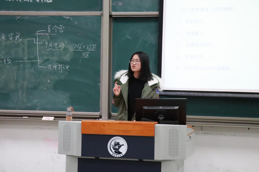 第二位交流分享的是陈勇成学长。陈勇成学长优干保中财税务专硕。陈勇成学长介绍了优干保研对成绩、学生工作等方面的要求,优干保研的基本流程,优干保研需要在专业知识、信息收集和面试方面的准备,优干保研的优势与劣势。最后,陈勇成学长送给大家“脚踏实地,仰望星空”的励志名言,旨在劝诫大家踏踏实实,努力奋斗。