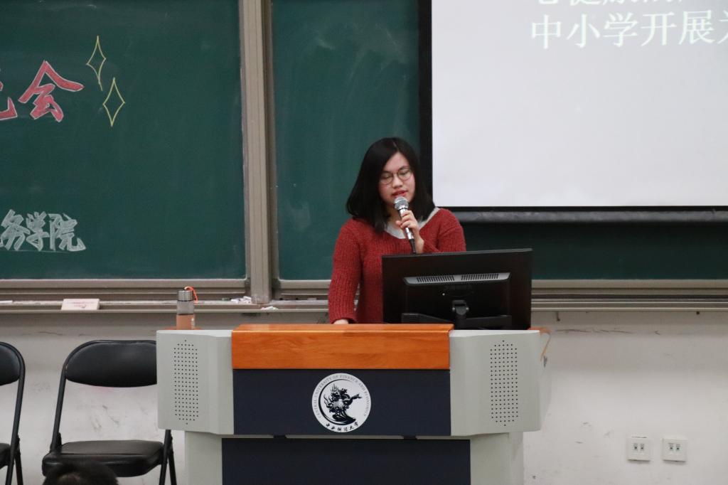 接下来做分享的是支教保中财的朱雯慧学姐。朱雯慧学姐首先介绍了支教团的基本信息和我校招募情况。然后,朱雯慧学姐还介绍了申请支教保研的资格条件。在资格条件方面,学姐特别强调志愿时的重要性。最后,学姐讲到,现阶段,同学们需要在专业知识、志愿服务和学生工作方面有所加强,打好基础。