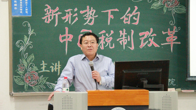 12月18日晚上,财税学院在中央财经大学沙河校区东区主教213教室举办了以“新形势下的中国税制改革”为主题的讲座。主讲人为中央人民大学财政金融学院副院长、中国财政学会理事、中国税务学会委员会委员、中国税务学院理事、中国财税法教育研究会理事岳树民教授。开云网页版入口中国有限公司院长白彦锋教授,院长助理汪昊老师,税务管理系王怡璞老师,院团委副书记陈颖老师,以及学院本科和研究生同学参加了本次讲座。