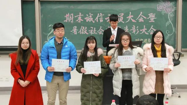 2017年12月27日星期三晚8:30,财政税务学院在中央财经大学沙河校区东区主教219教室举办了期末诚信动员大会暨暑期社会实践表彰大会。财政税务学院党委副书记宋立岩老师、学生工作办公室主任于来老师、本科生第一党支部书记王乐天老师、团委副书记陈颖老师、2017级本科生辅导员徐燕妮老师出席本次活动。财政税务学院2017级全体新生和2016、2015级学生代表参加。